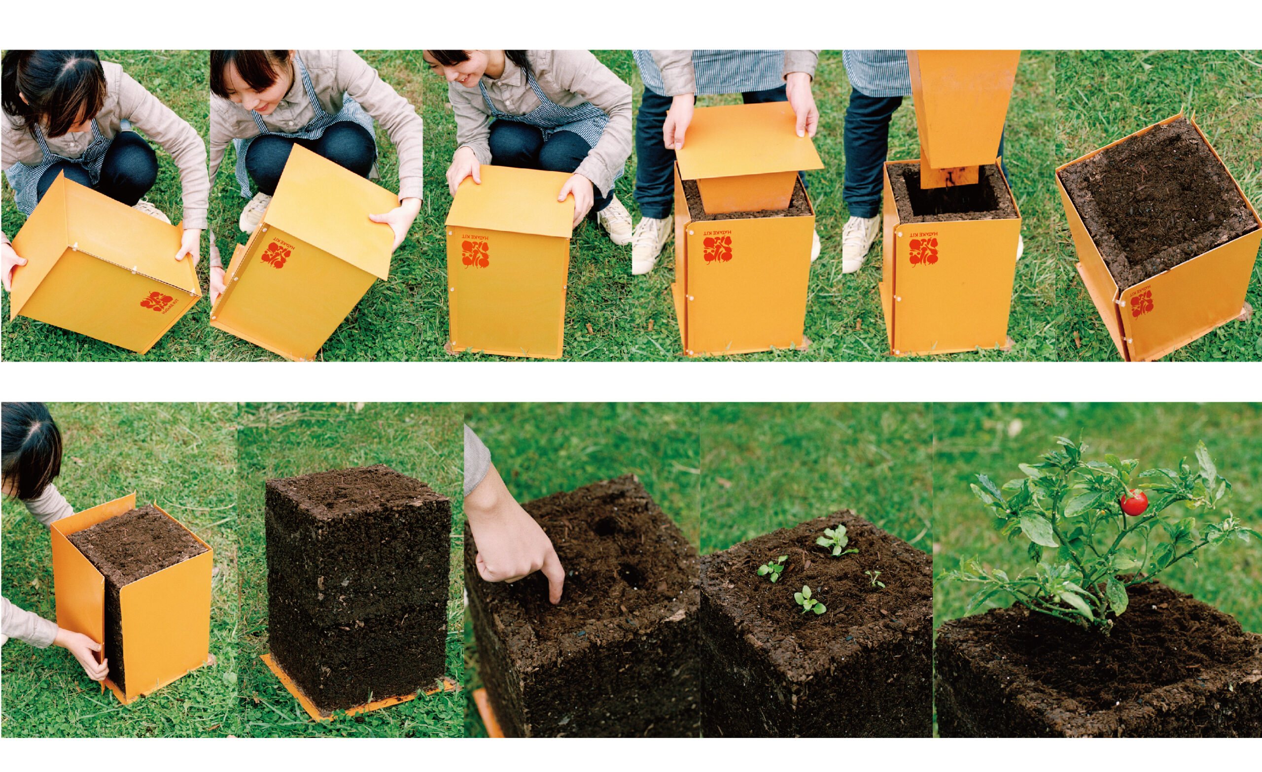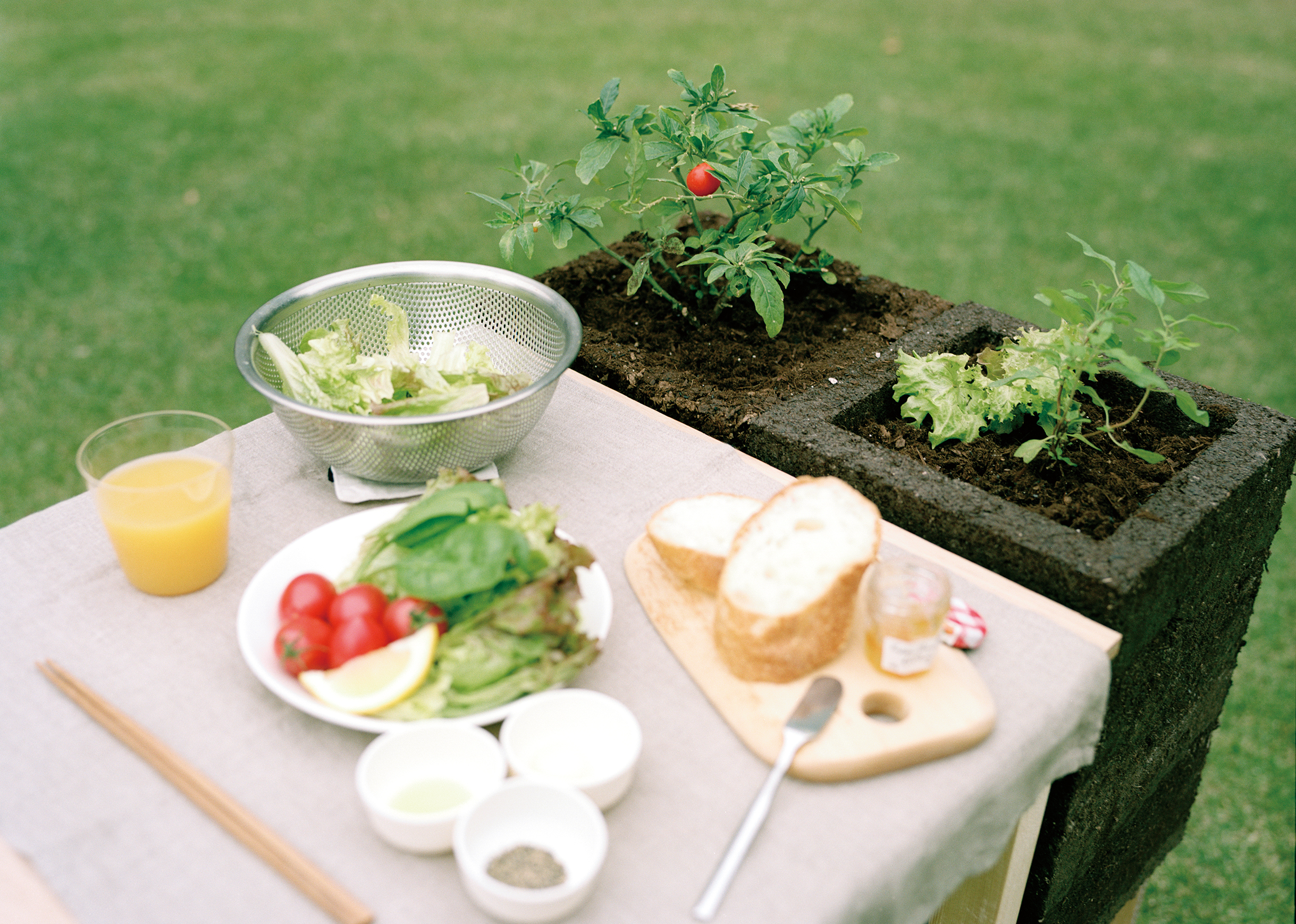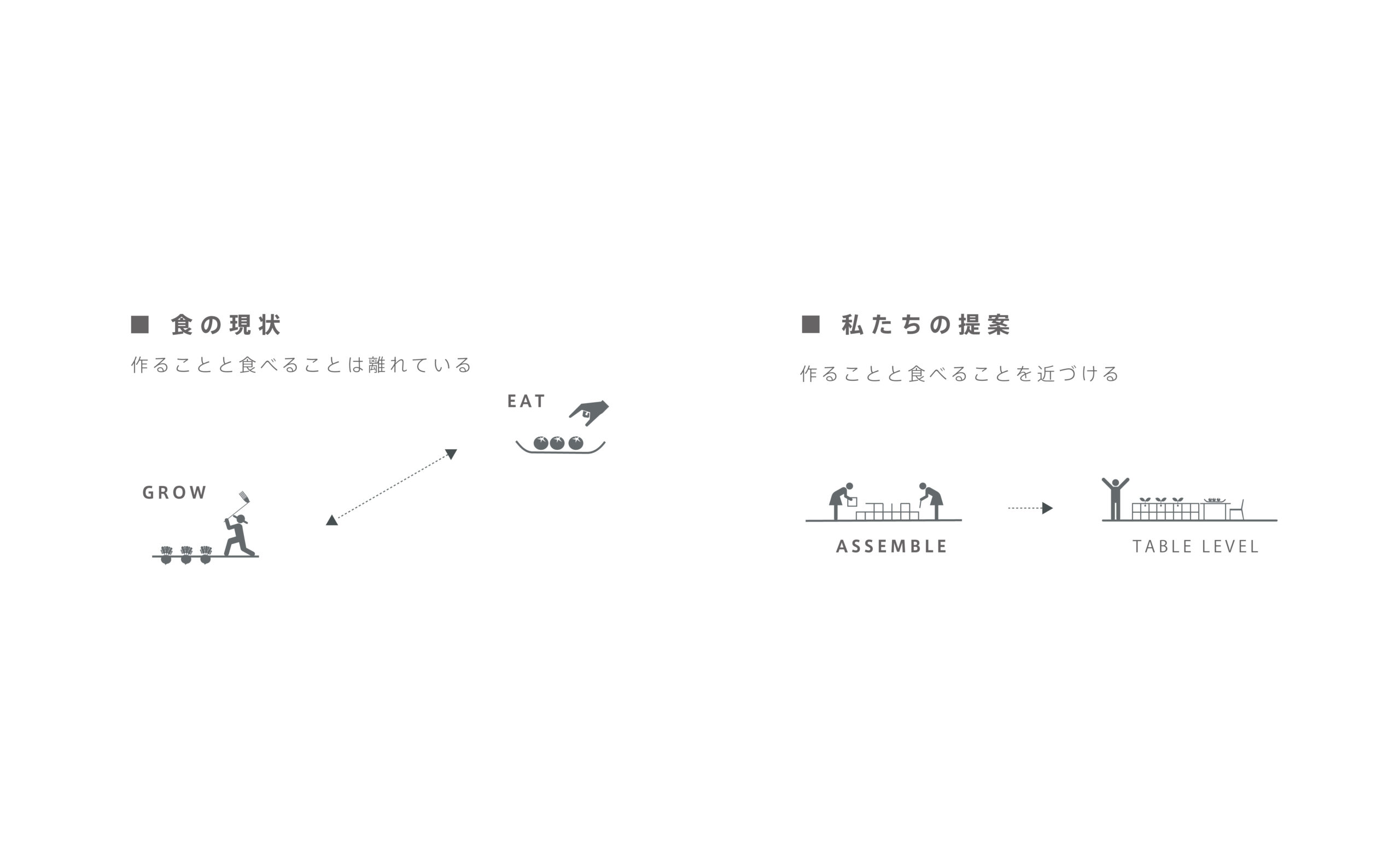 まず、畑を食卓の高さまで持ち上げることによって、「生産の場」と「食の場」との間にある物理的な距離を近づける。すると、食の象徴である食卓と空間的なつながりが生まれる。生産の場である畑を自分の手で造り、その畑が自分の生活の距離に入り込んでくることで、起こるであろうさまざまな経験が、「生産の場」と「食の場」にある大きな距離を埋めてくれるはずだ。
