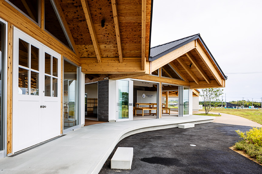 ブランド立ち上げ時から、この場所に人が戻るためには何が建つべきか議論を重ね、工場単体の機能を持つ建築物を建てるのではなく、生産・消費・滞在を兼ね備えたオープンな場所、「FUN EAT MAKERS in Okuma」を作ることを提案した。それは同時に、企業が魅力的な公共の場をどう作り上げていくかがテーマにもなった。